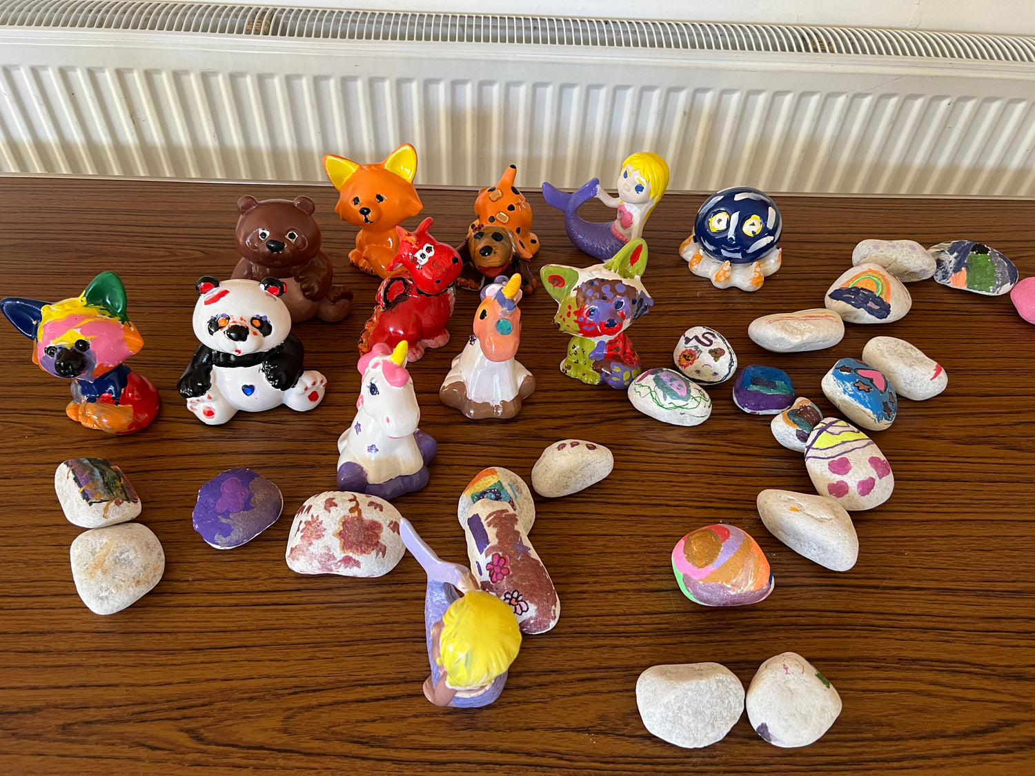 - Pottery painting with a range of figures and animals to choose from. We use quick-drying paint that doesn’t need to be fired so that you can take them home at the end of the party (we spray them with gloss to seal the paint and make them shiny!). Optional googly eyes and gems!