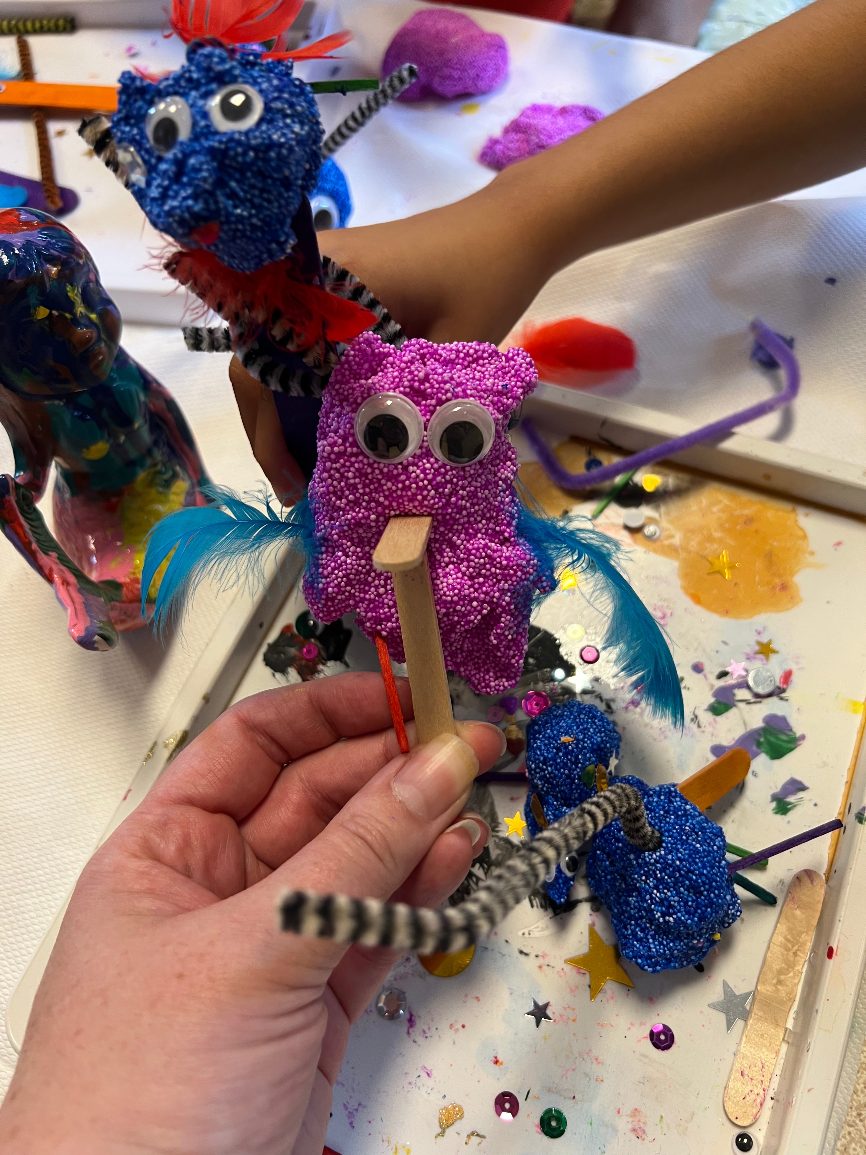 - Finish with a foam clay modelling (a tray of foam clay and other accessories such as googly eyes, gems, lollipop sticks, pipe cleaners for the children to make whatever they like with).